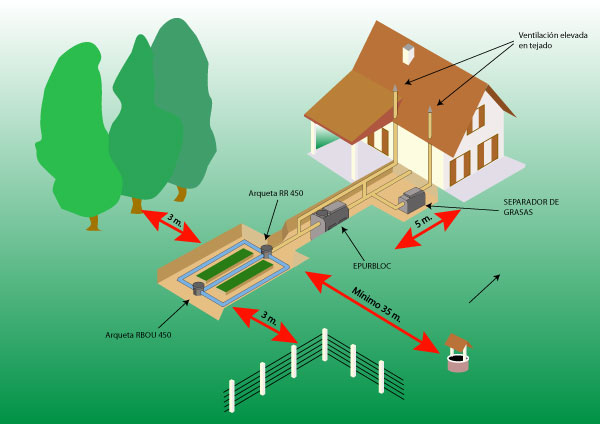 Inicio Tutoriales Depuración de Aguas Domésticas Esquema de instalación de un sistema de tratamiento autónomo Esquema de Instalación de un sistema de tratamiento autónomo