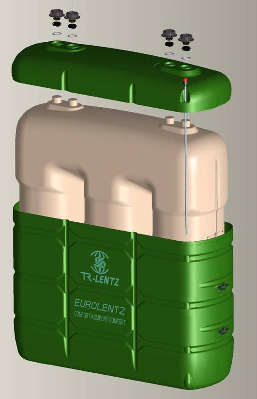 - El tanque interior es un depósito normal, autoportante con refuerzos. La envolvente exterior también es de polietileno.